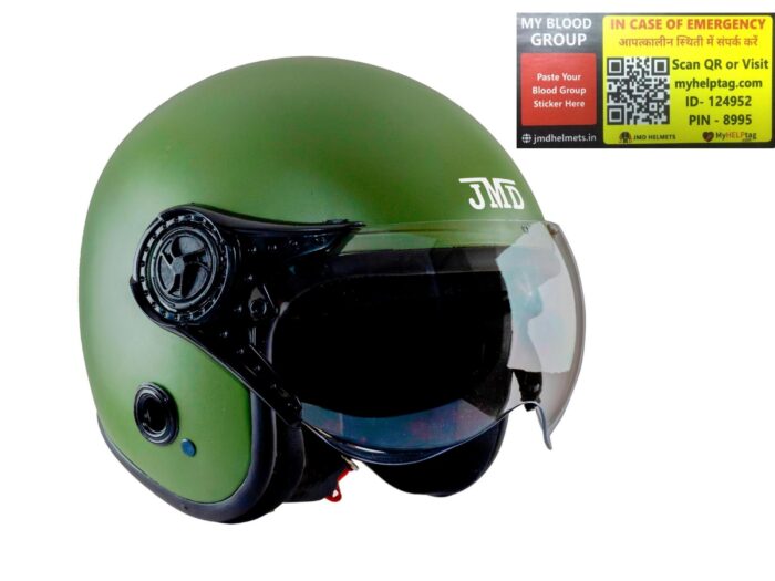 JMD WONDER OPEN FACE Helmet For Men/Women With Emergency ID Tag. Motorbike Helmet (MATT ARMY GREEN)